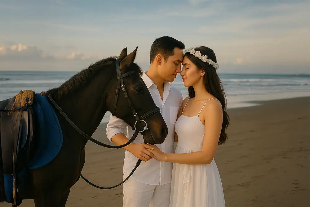 - Berkuda: kamu dapat menyewa kuda lengkap dengan pawang nya, dan bisa dibawa menuju tepian pantai. Biaya sewa untuk menunggangi kuda akan dikenakan harga mulai dari IDR. 500.000